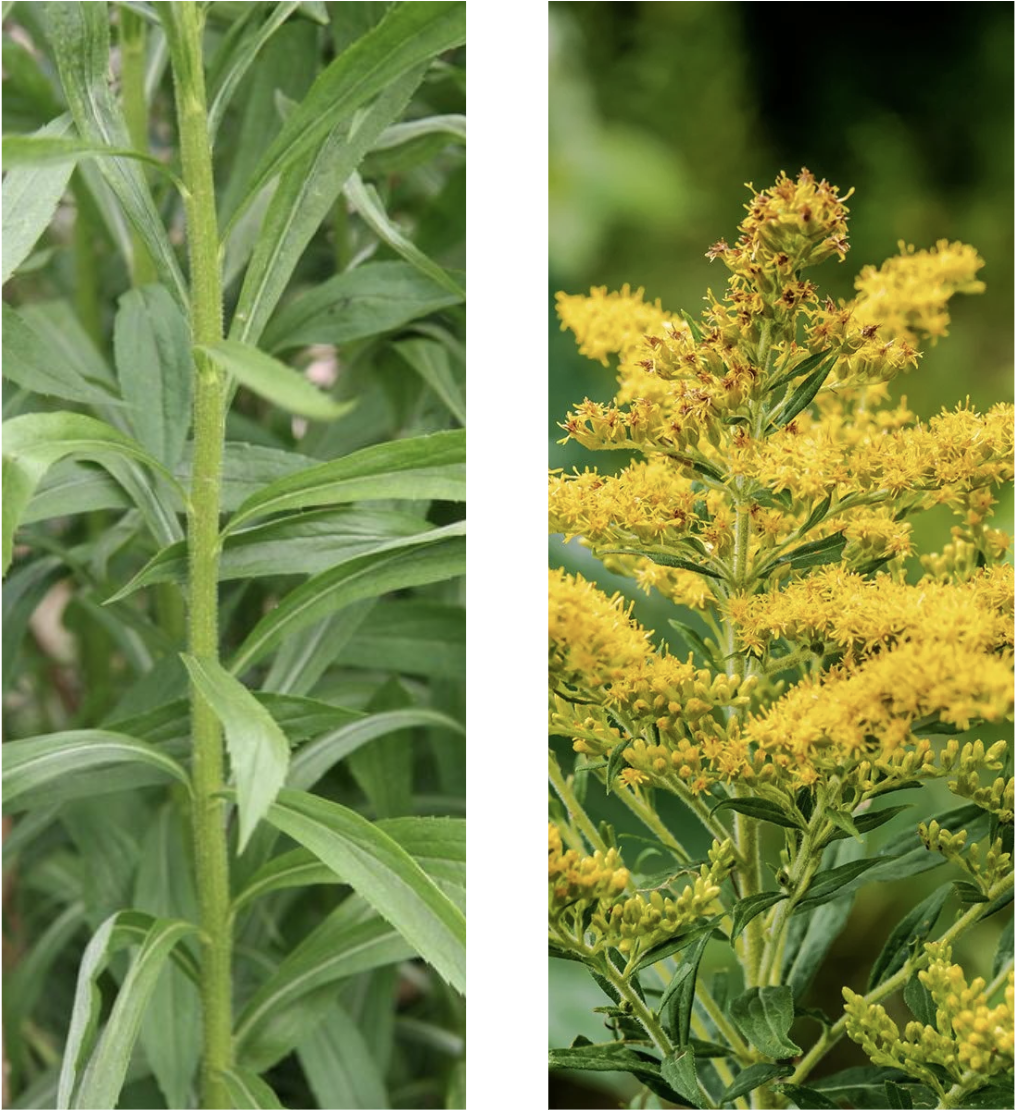 Canada Goldenrod blooms in the summer and fall. Goldenrods are able to grow up to 2 meters tall and have small dense yellow flowers. Due to their later blooming time, goldenrods are excellent at attracting pollinators while other plant species finish flowering earlier in the year. While there are many pollinators of goldenrods, one key species is the monarch butterfly. To learn more about Canada goldenrods, visit: