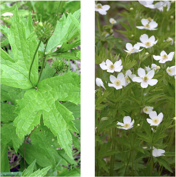 Canada anemone’s deeply lobed leaves grow atop a 1-foot tall stem. In spring, canada anemone blooms white, five-petaled flowers with a light yellow center. This plant can become quite aggressive with the native garden, growing over or pushing out other plants. To learn more about Canada anemone, visit: